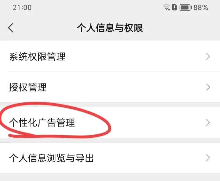 点击“个性化广告管理”,(如上图所示)