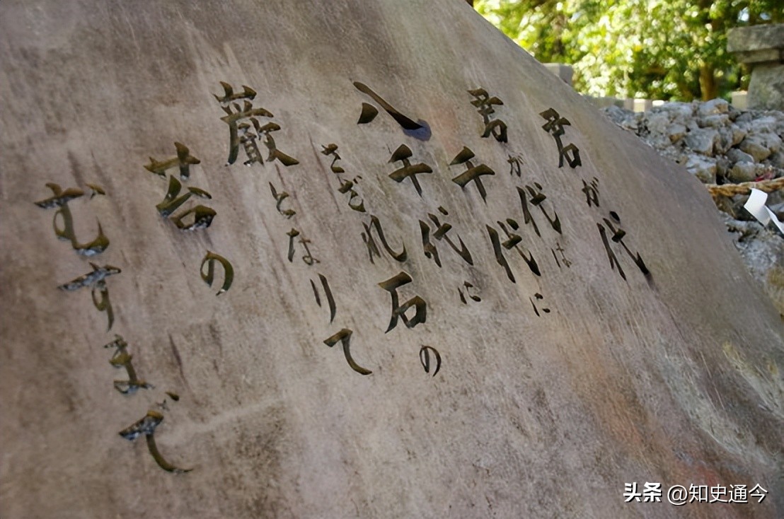 表面上看,这是对天皇统治延续的祈愿,仔细观察我们就会发现,这短短的28个字却有着多重隐喻。