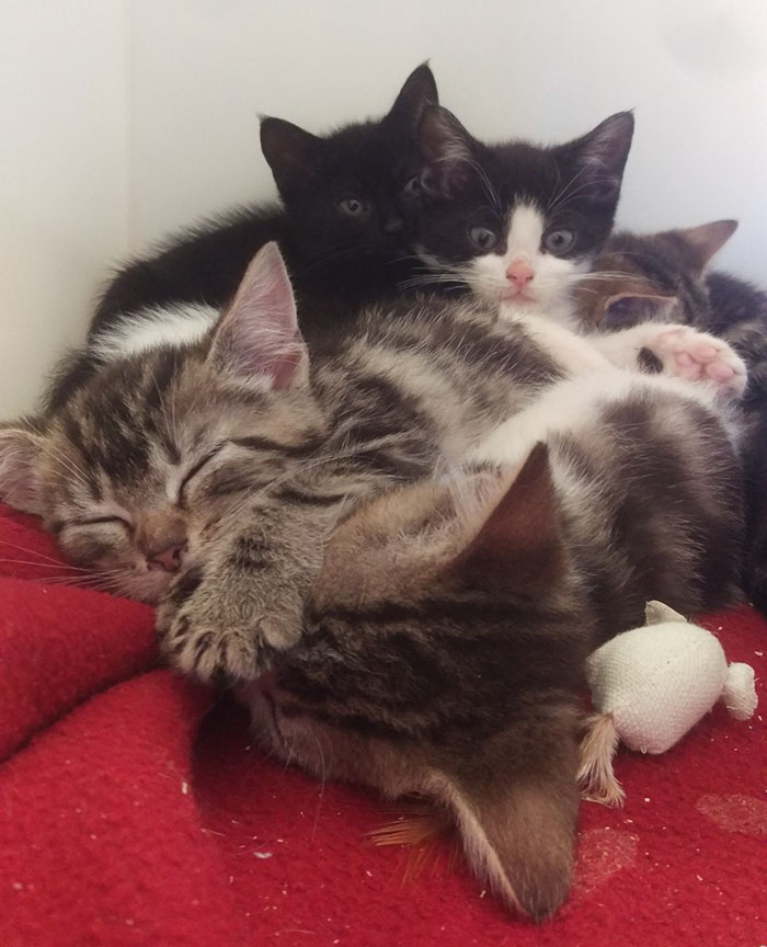 这位女士立即将他们带回家,叫来了最近的皇家防止虐待动物协会(RSPCA)。救援人员赶到时,立刻将猫妈妈Tarini带到诊所,进行重症监护,而小猫们则被带到了RSPCA。