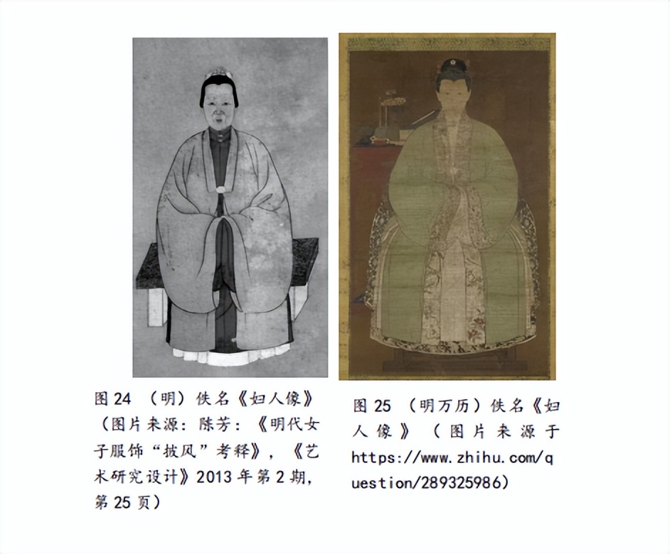 正由于披风的功能与适用人群与宋代褙子相似,都是在普通场合可以穿着的大众流行款,所以无论是服饰通史类书籍还是研究论文,都将披风划为褙子而不是大袖的后续演变物。