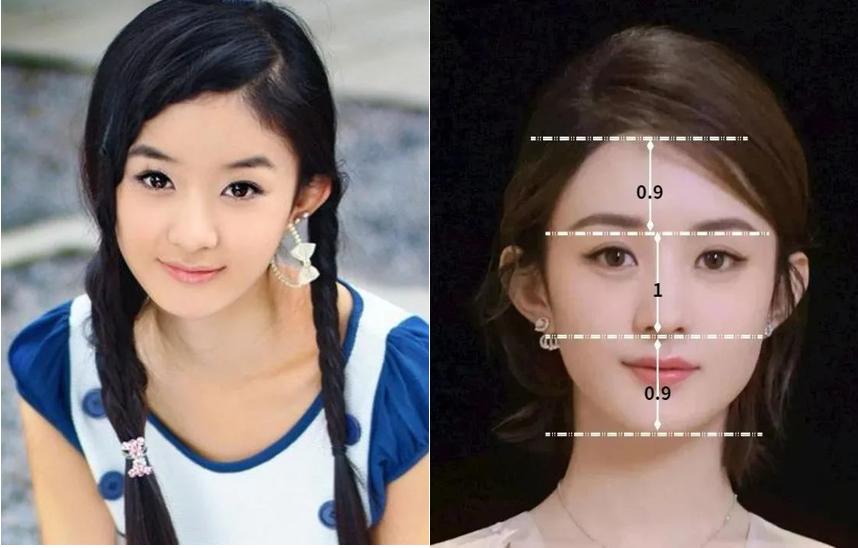 但是,有时候稍微偏离标准的三庭比会更令人惊艳。赵丽颖规矩的三庭比,就有点呆板土俗。缩短了上庭之后,少女感立马暴涨!