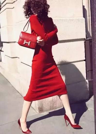 赤色高跟鞋,悄然精美,自带诱人特点,赤色的修身连衣裙性感娇媚,魅力十足。