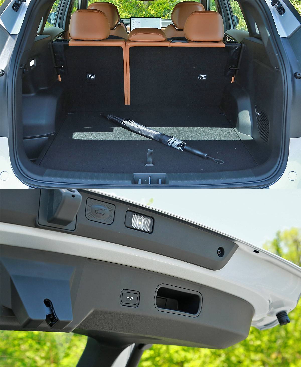 车辆尾部的轮廓造型与现款车型相差不大,后包围部分取消了现款车型上的装饰性排气口,真实的排气管口依旧采用隐藏式的设计。