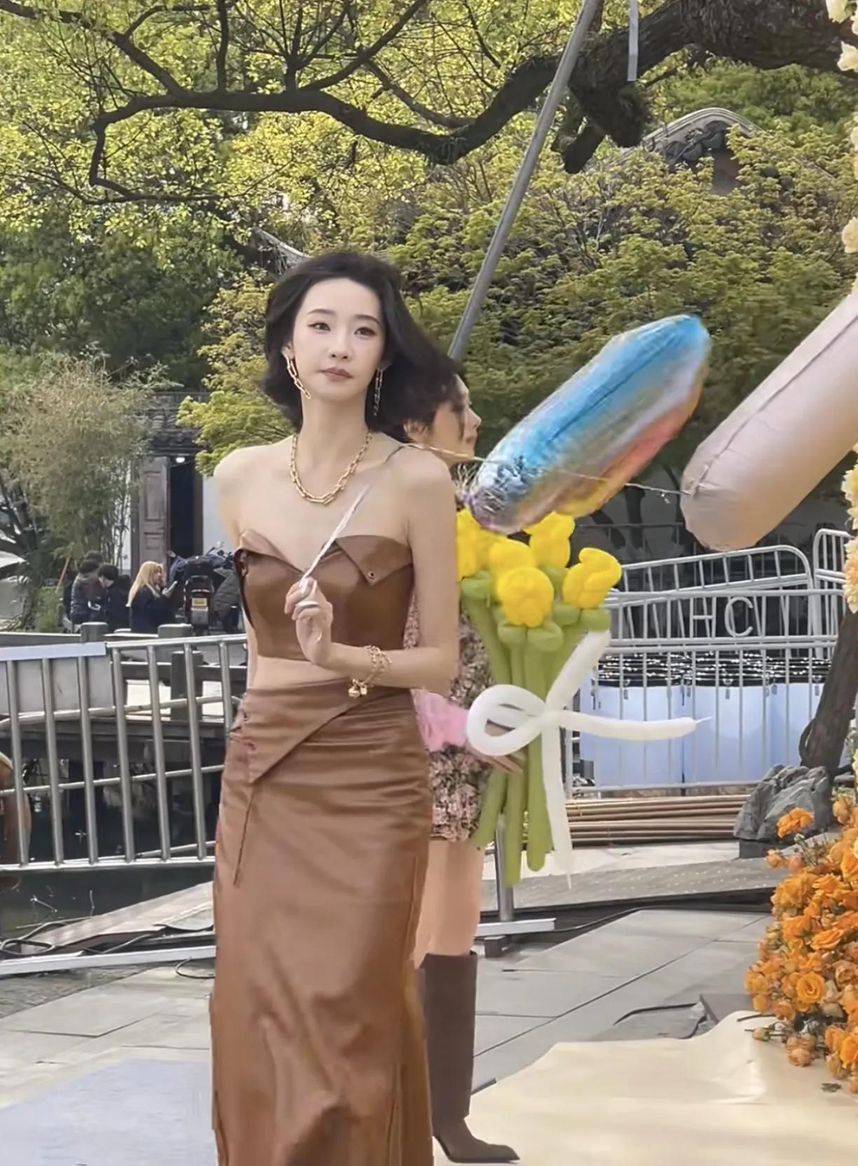 尽管天气微凉,但看到刘亦菲现身西湖参加活动,身穿贴身的抹胸紫色珠花礼服亮相,完美展现出了紧致而且优秀的身材曲线,岁月沉淀带来的气质与成熟有故事的脸相配,充满了气血充足的健康质感。
