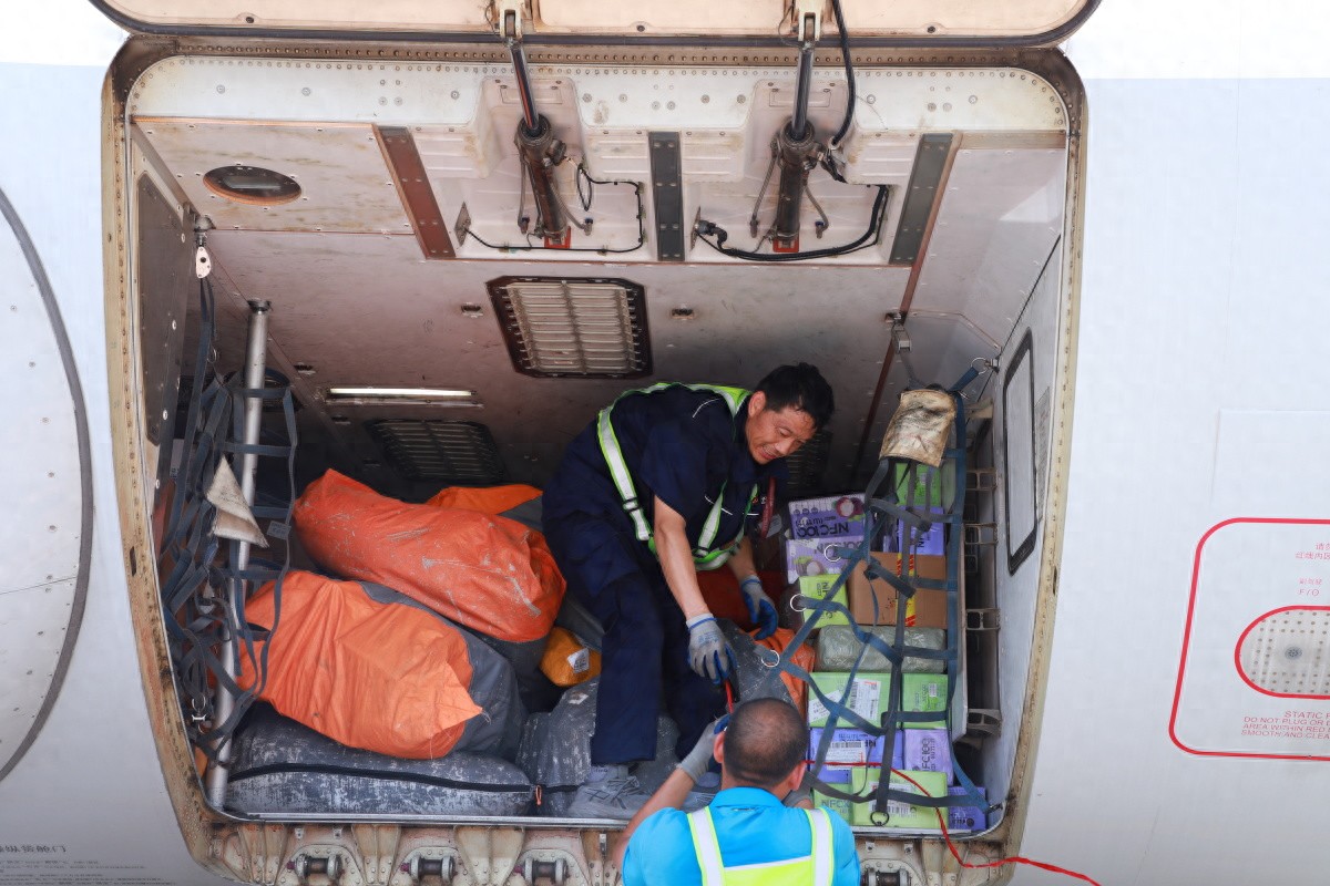 很快,载着大小货物的小拖车驶来,同事们托举着货物递给腹舱内的李坤垒,他一件件从里到外码放到位,此时,后腹舱的空间却余下舱门口约3平方米大小的位置。 郑州机场旅客服务部货邮行保障室主管王宾宾解释说,此前已在前后舱装入约 1.6 吨货物,监装监卸员需根据行李数据精确预估,预留太多浪费舱位,不足则要卸货重运,直接影响航班运输效率。