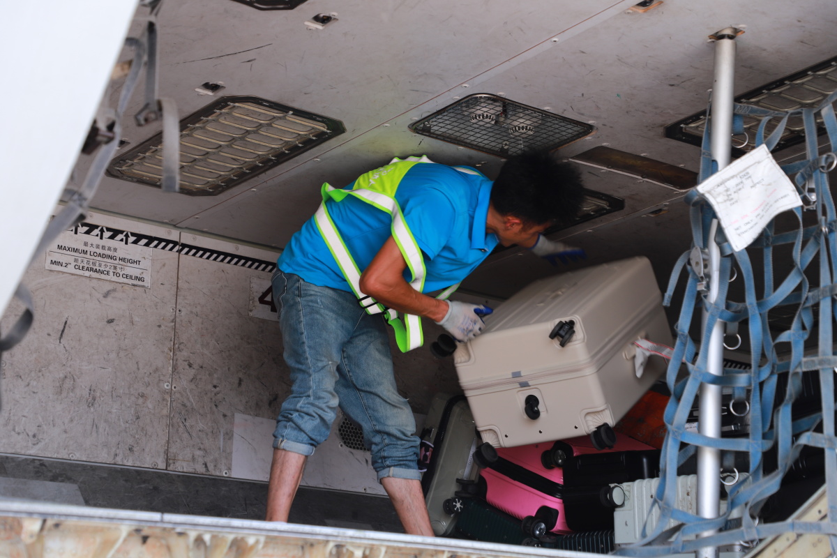 此外,装卸行李货物还需要讲求工作效率。为了让旅客下机后,到达行李转盘提取处顺利提取托运行李,100件行李通常得在10分钟内完成卸机,100件以上行李则要在15分钟内完成卸机,而且每一件货物都要“温柔”放至指定位置,轻拿轻放、确保旅客大小件行李不会出现重压、损坏。
