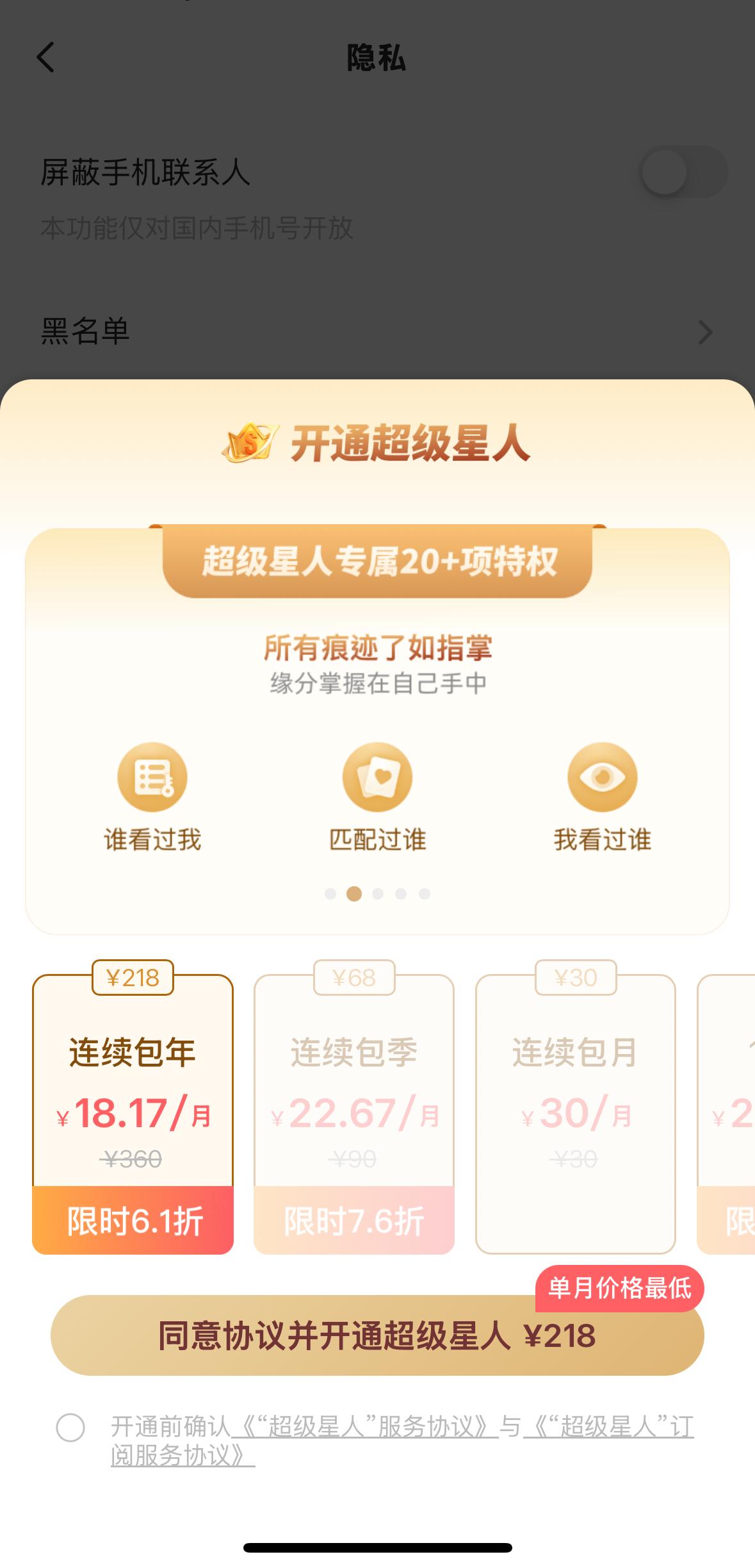 在交友平台Soul上,如果用户付费开通“超级星人”特权,可以对来访记录、隐身访问功能进行设置,包括屏蔽访问其他用户的记录,查看隐身访问自己的人等。