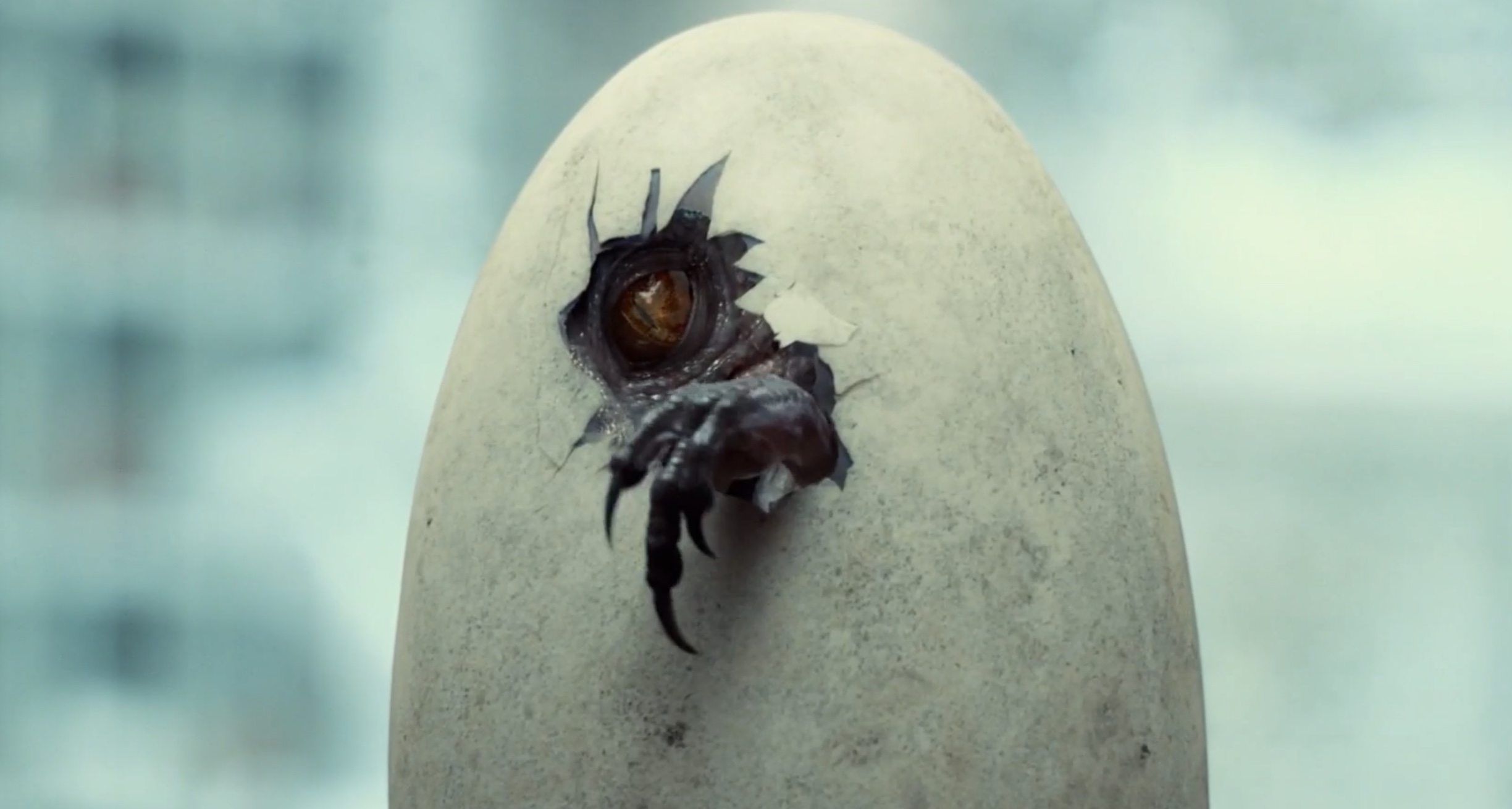 而暴虐霸王龙,目前已知的至少混合了14个物种的DNA,片头出现了两个恐龙蛋,其实就是培育出来的两只暴虐霸王龙,在成长的过程中同类相残,只剩下一只。