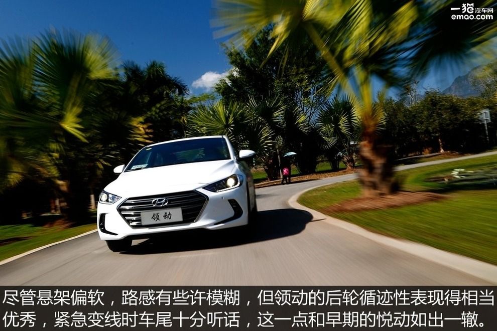 就整体感觉而言,领动体现出前软后硬的悬架特质——这或许是因为后悬架为扭力梁结构的原因。前悬架支撑度足够,回弹积极,但缺乏一些路感,紧急变道的感觉就像是玩赛车游戏,后悬架的减震能力显然不能和前悬架相提并论,过减速带时震动较大。轮胎的细碎滤震能力显然不错,但胎噪是个问题。