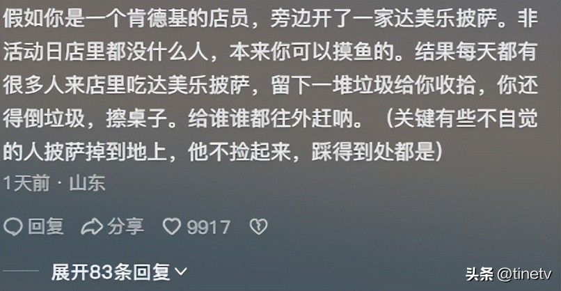 不得不说达美乐是懂得营销和节约成本的,但是这样确实很影响别人做生意啊。朋友们,你们是怎么看的呢?