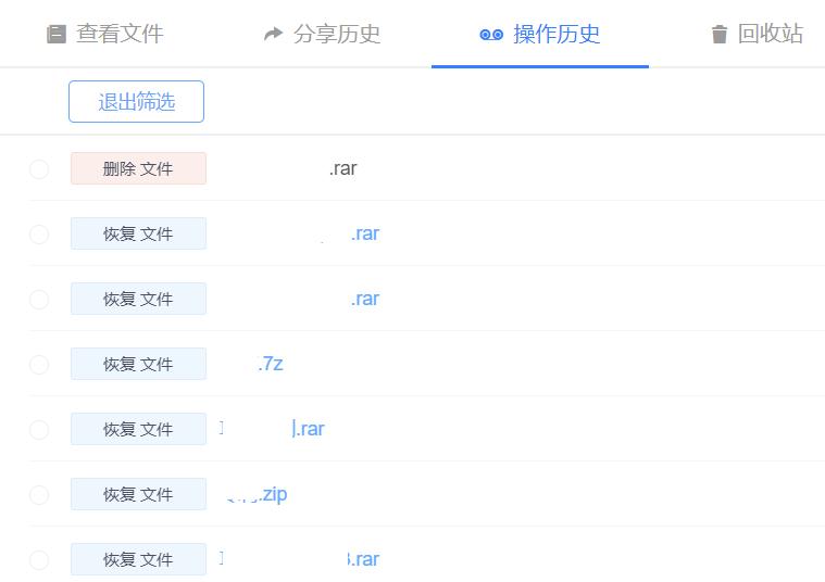 这时想起来坚果云是有最近文件修改记录的,赶紧打开网页端,去几个添加到同步的根目录文件夹下,打开一个文件夹,点击操作历史,就会看到过去进行的修改。前边会有操作的类型,比如移动文件,增加文件,删除文件,等等。