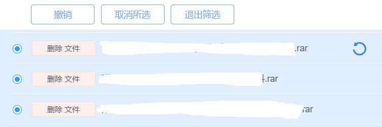 候选第一条,就是刚才删除的文件,上方会出现撤销、取消所选、快速筛选这三个选项