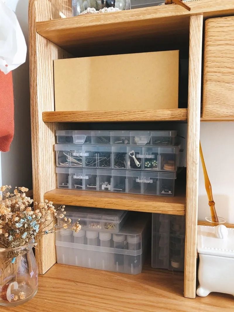 5. ⼤创的⼩收纳箱:这种箱⼦其实很多家都有卖,⼤张的⼿帐素材、朋友送的卡片与明信片、保养品囤货都很好收。