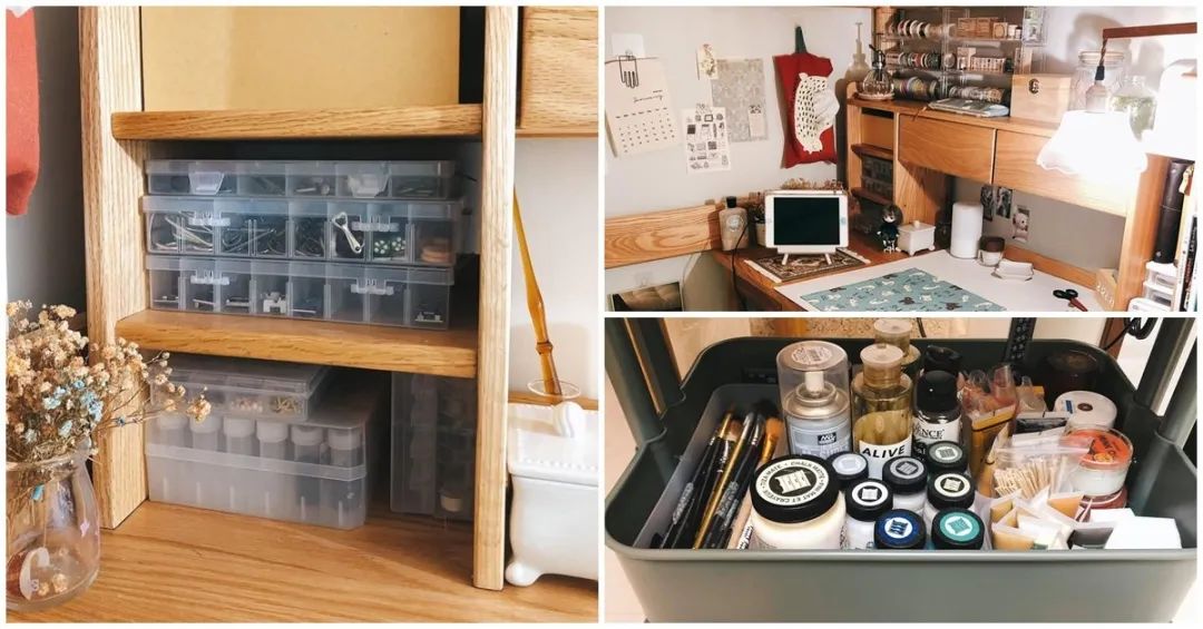 因为小李的房间不大,又要兼具睡眠、⼯作室等功能,所以放器材、⼯具、材料的位置都需要仔细规划,以下分享了她觉得相当实用的小物: