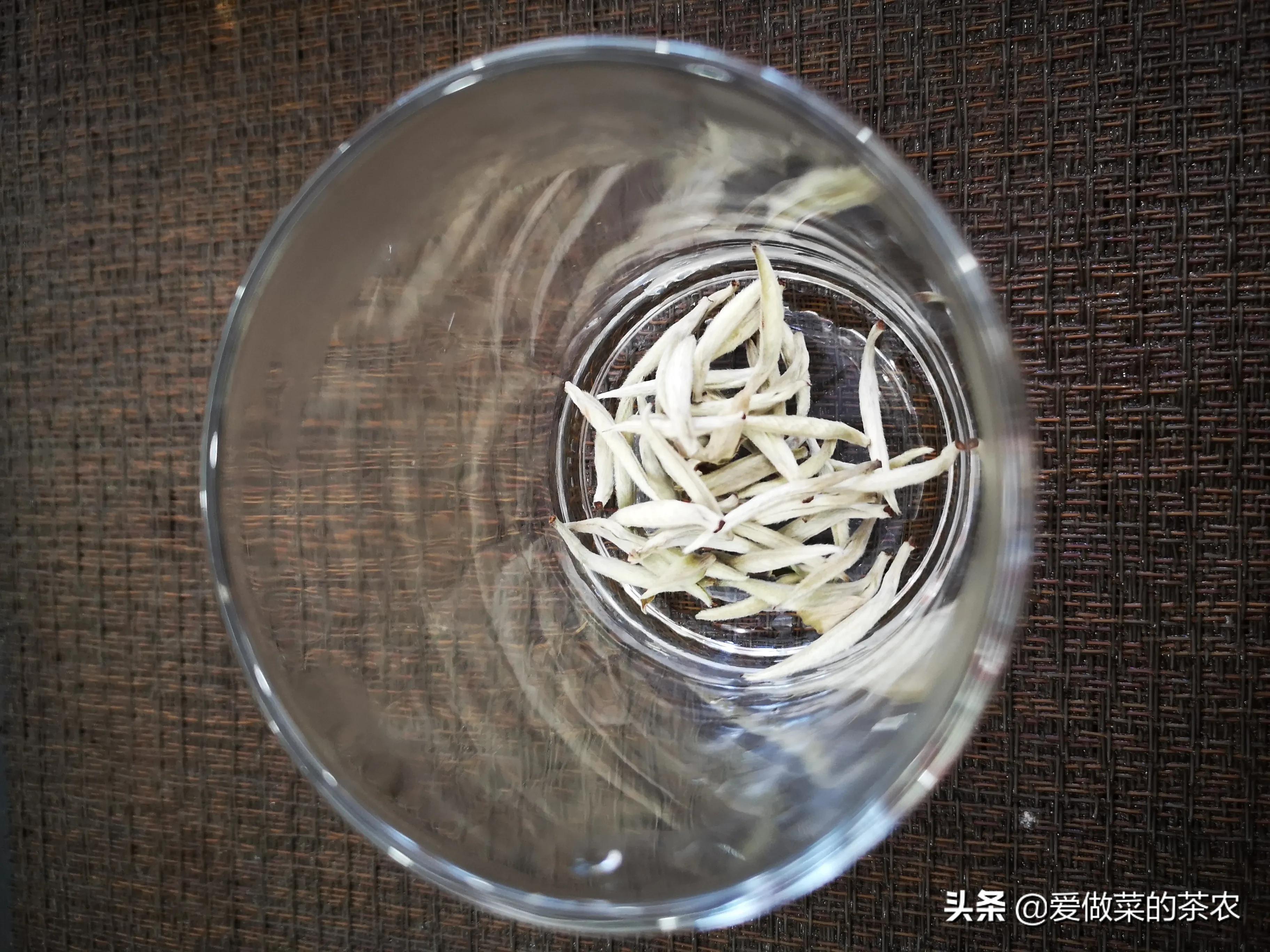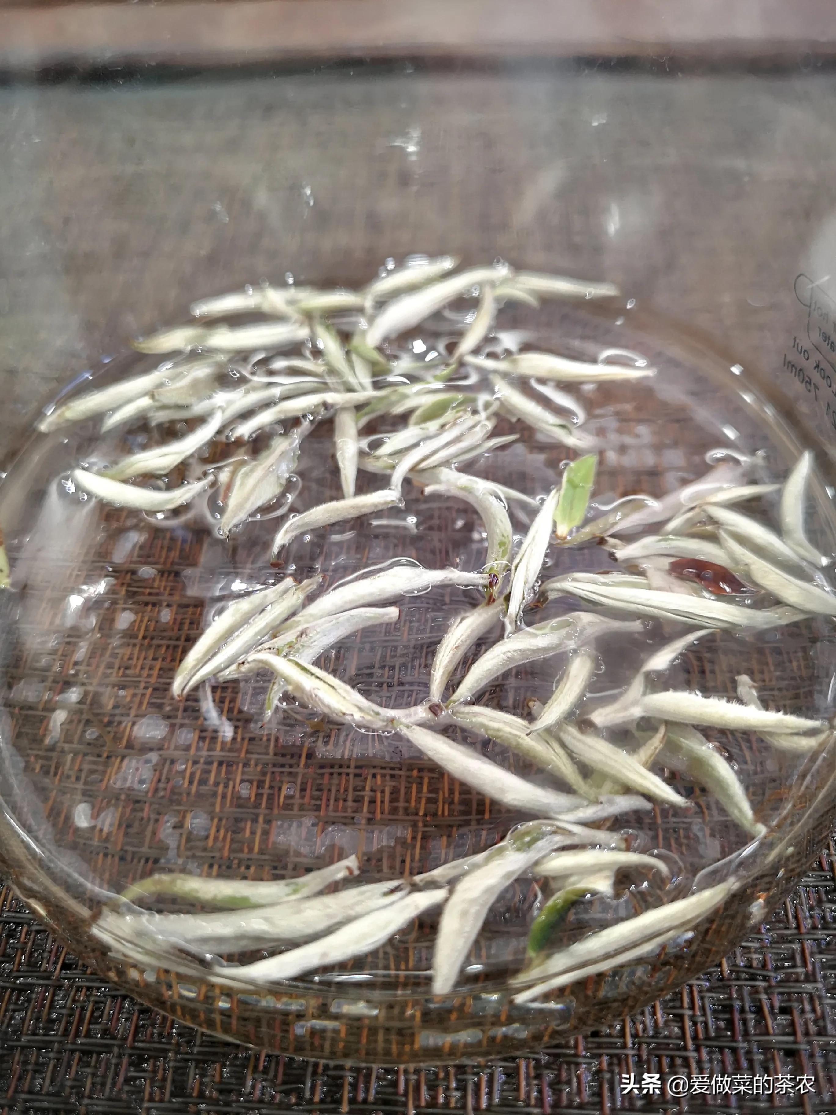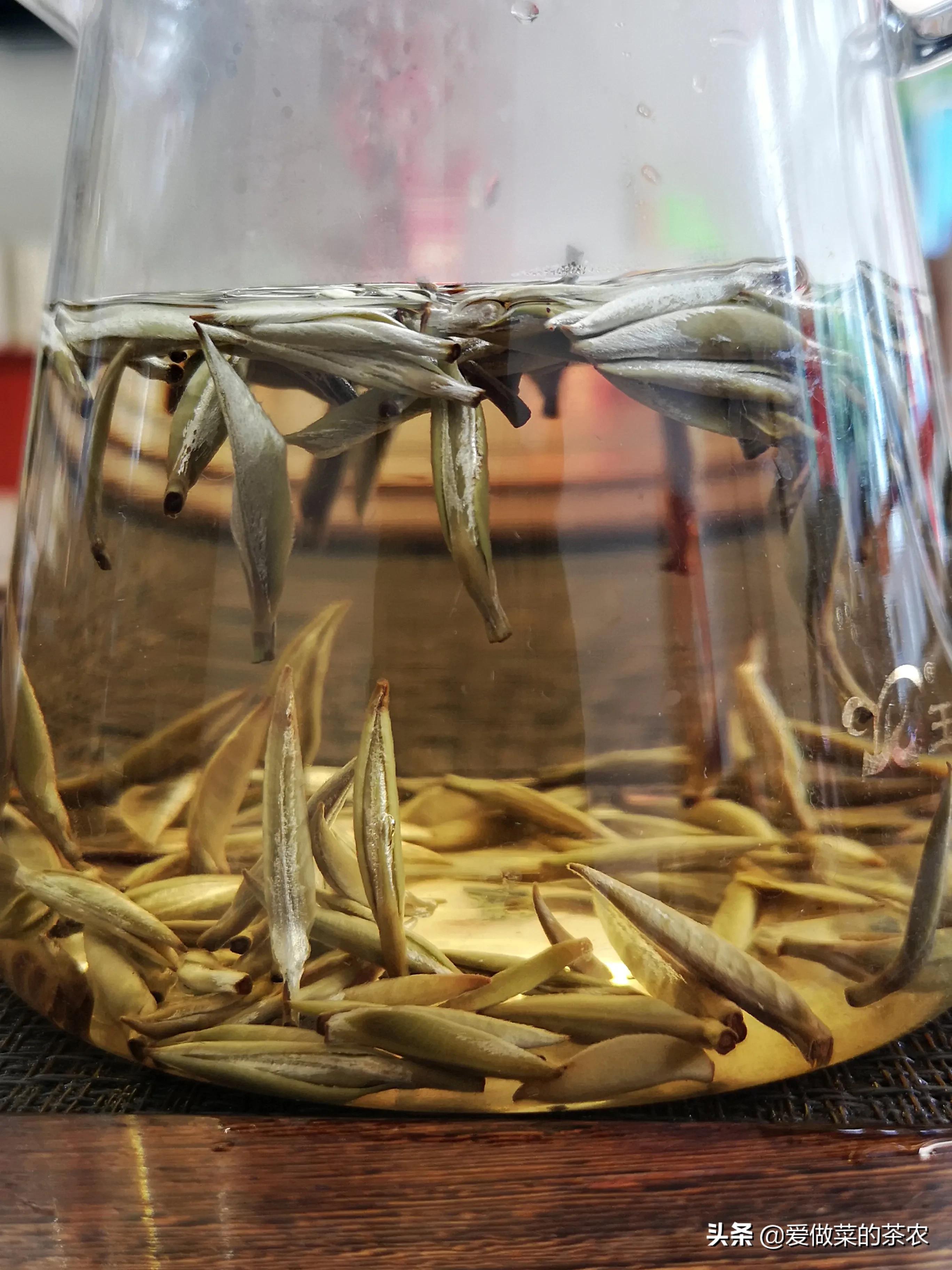 纤维组织没有被破坏,导致这几种以单芽制作的茶品,在吸水的过程中,主要以茶梗部位为吸水的主要部位,导致茶梗吸收水分更多,从而形成了茶芽在水中竖立的现象。