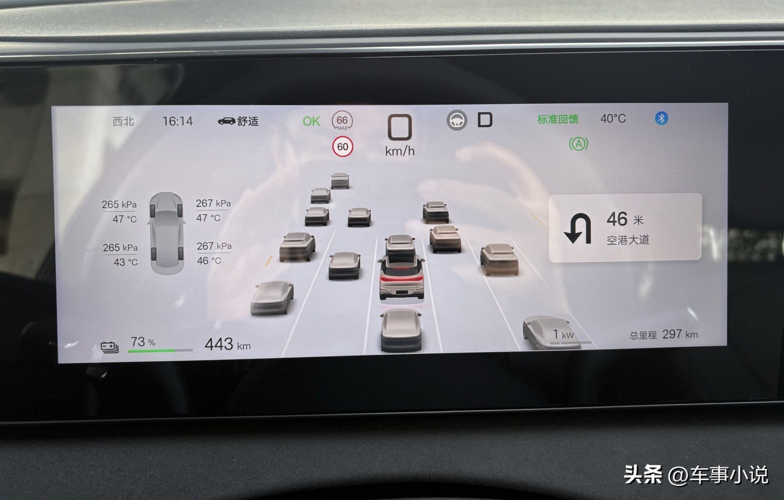 在道路试驾过程中,开启高快领航辅助后,车辆能自主完成上下匝道、大曲率弯道通行及避让大车等操作。当右侧大货车逼近时,系统会自动小幅左偏保持安全距离,过弯时则提前减速至合理车速,整个过程平顺如“老司机”。