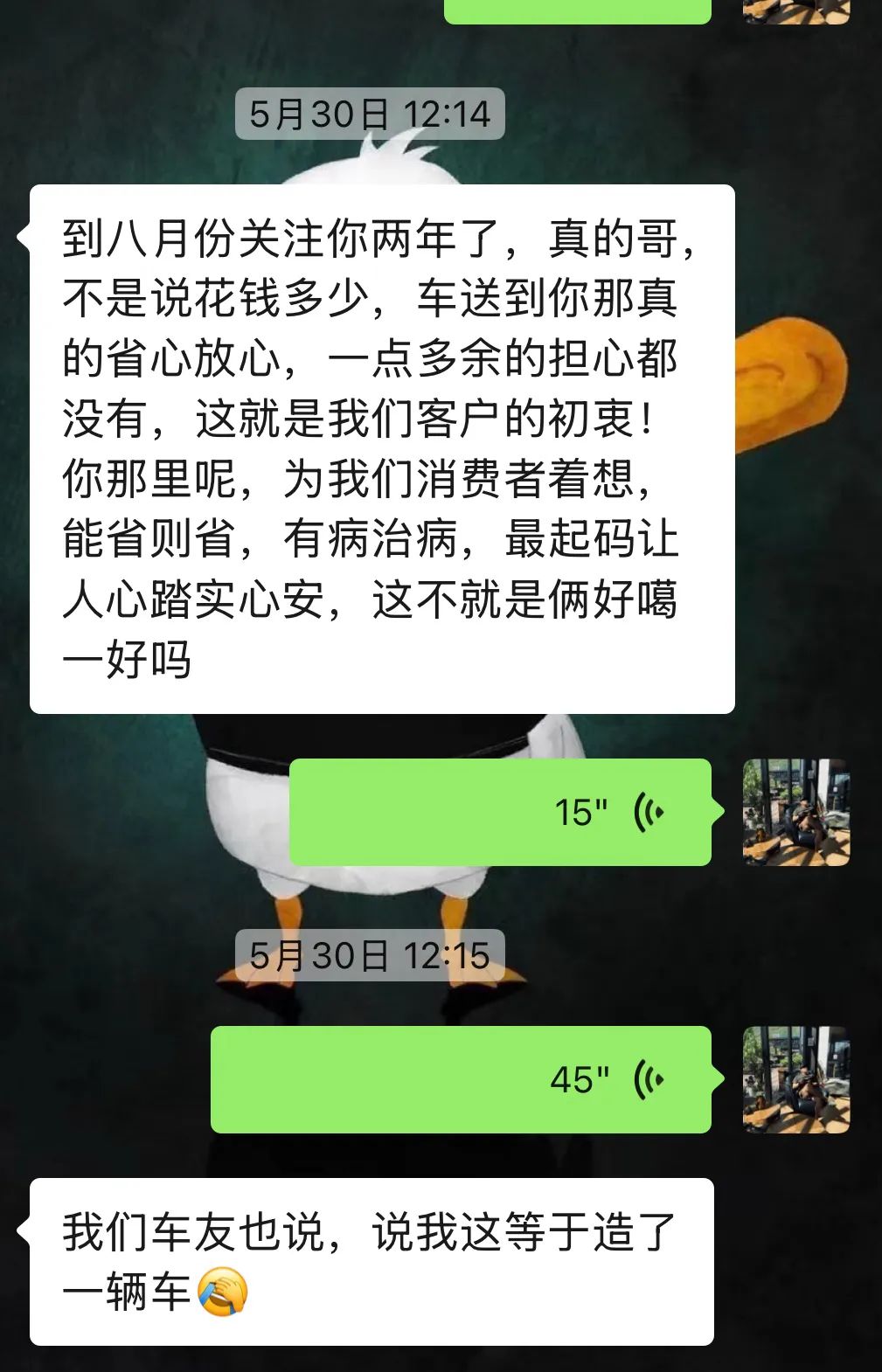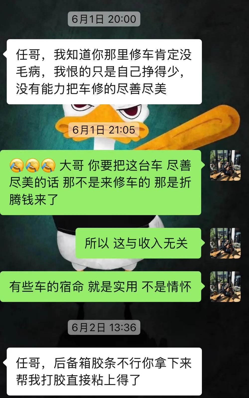 车主接车后的反馈,其实这也在我意料之中,他开后肯定会惊喜。