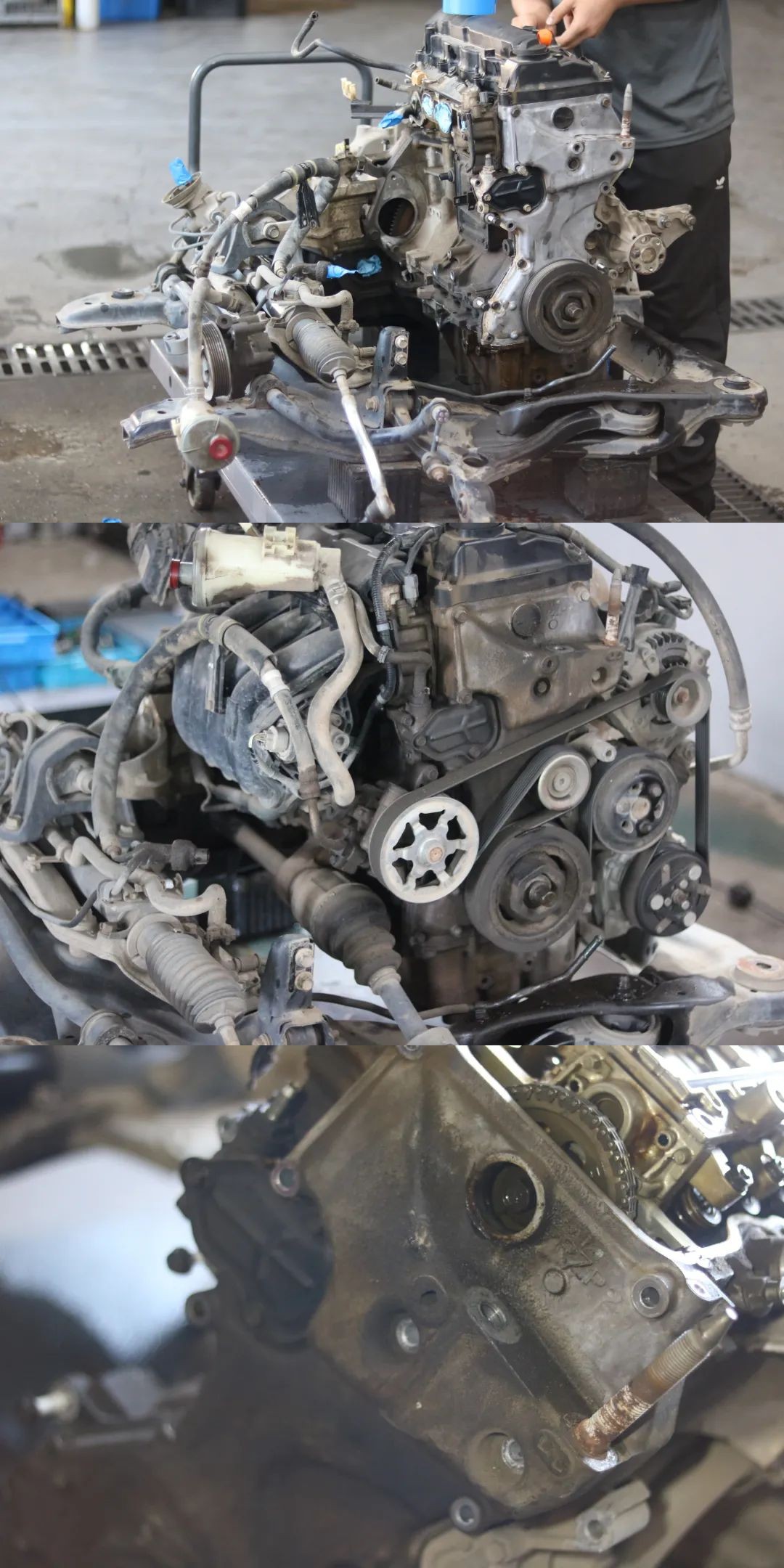 发动机漏油很严重,拆下来边修边检查。