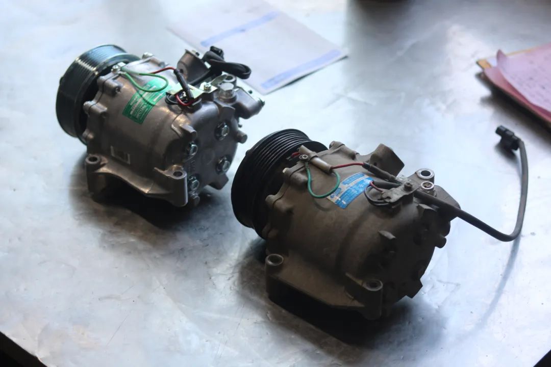 更换压缩机,车主说之前换的压缩机是原厂拆车的,我拆下来一看...超级大杂牌 。
