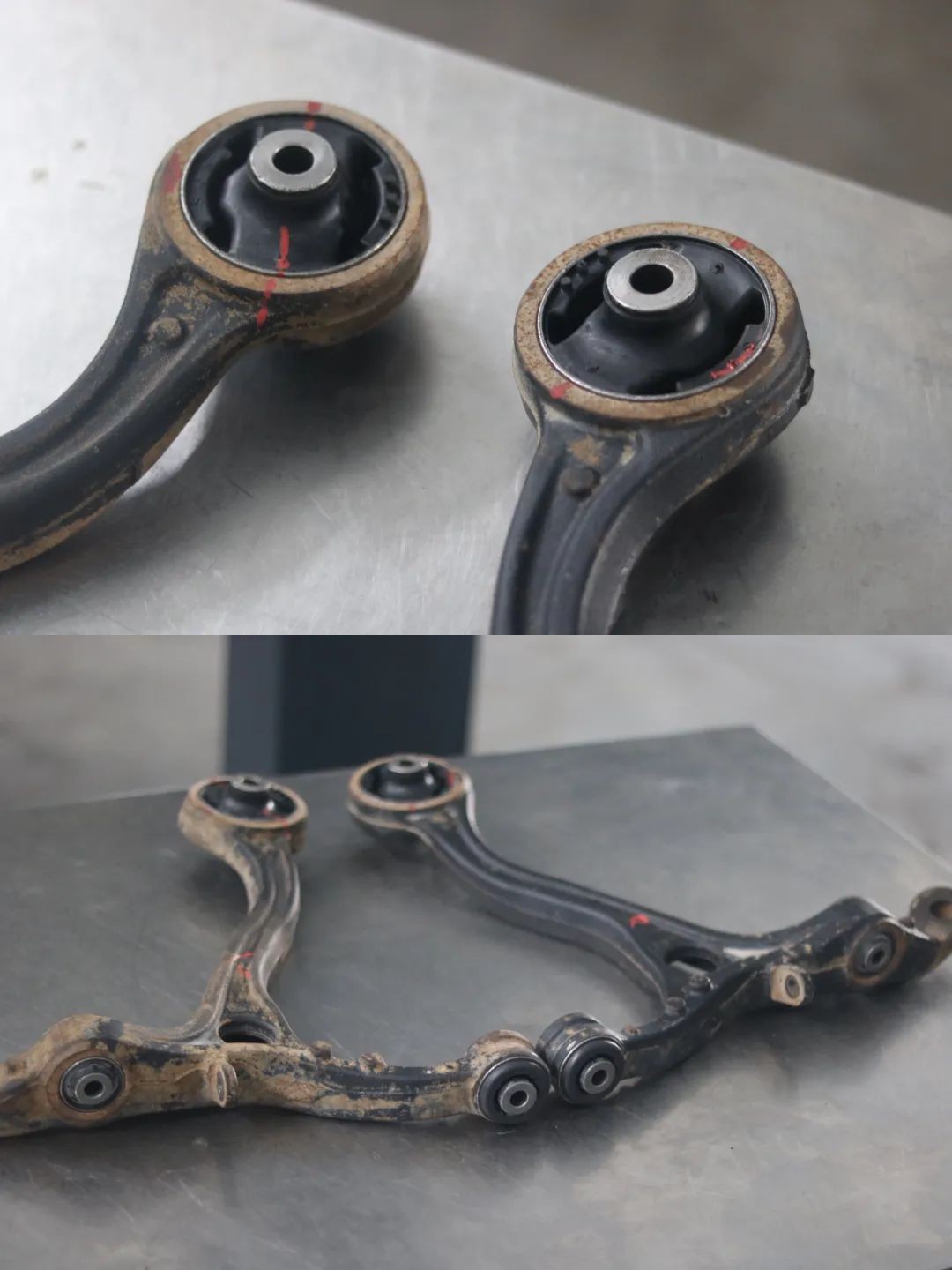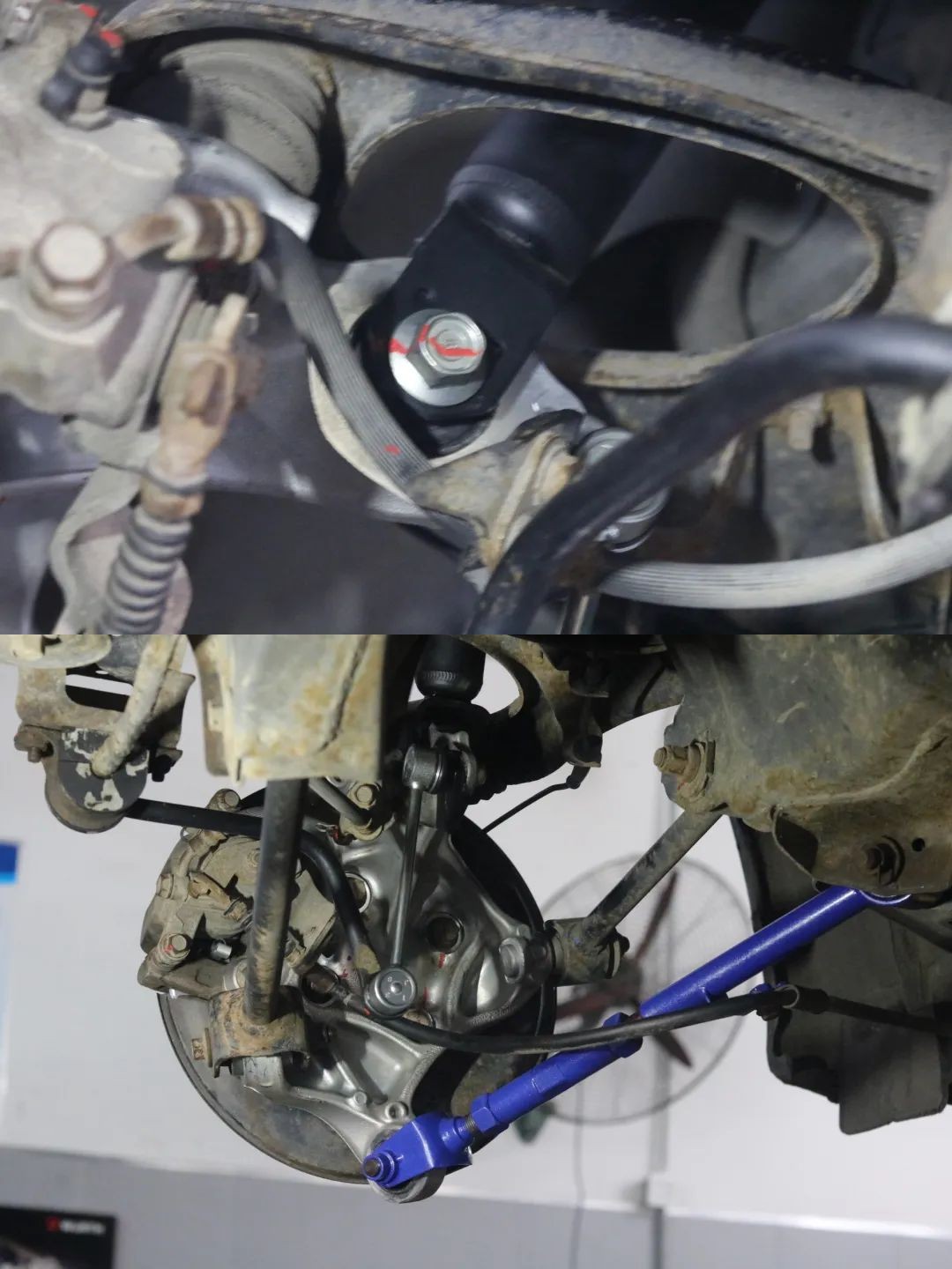 第二次:路试过程中发现后羊角有问题,拆解更换,再次定位。