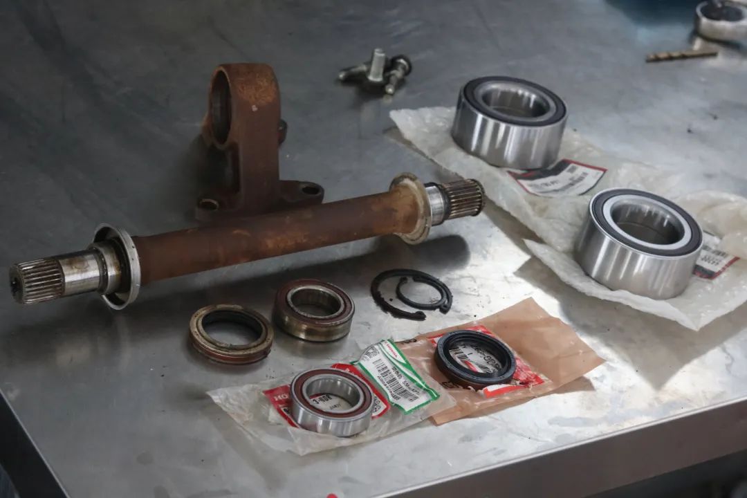 拆半轴,更换轴承。
