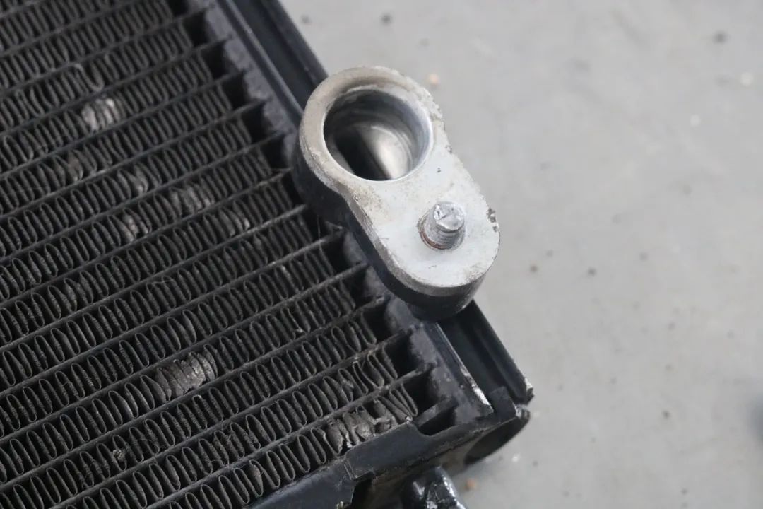 空调找到一个隐藏问题,冷凝器外表没问题,但里面很脏,都是黑杂子,所以车主之前刚换完压缩机又不行了,都是这些脏东西把压缩机搞坏了。