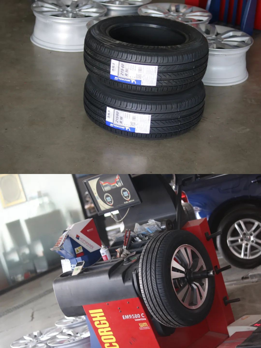 轮胎更换两条,然后做好动平衡数据。