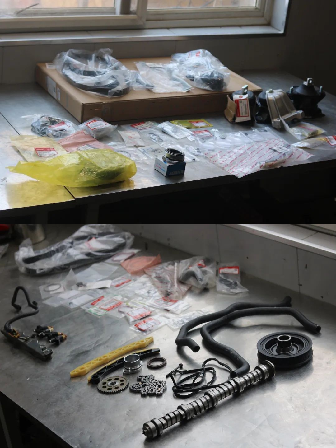 对于这台车发动机问题,说大不大,说小不小,更换一些密封圈、管路、凸轮轴、齿轮、链条等等。