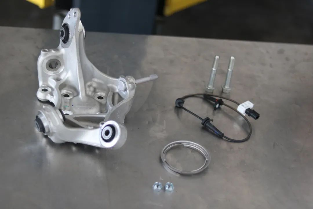 最后到的配件,这个不用做定位了,就需要拆个刹车,因为我们施工时候有发现刹车卡钳支架里面的螺丝扣都没了,这玩意要命的,买个拆车的支架换上就OK了。