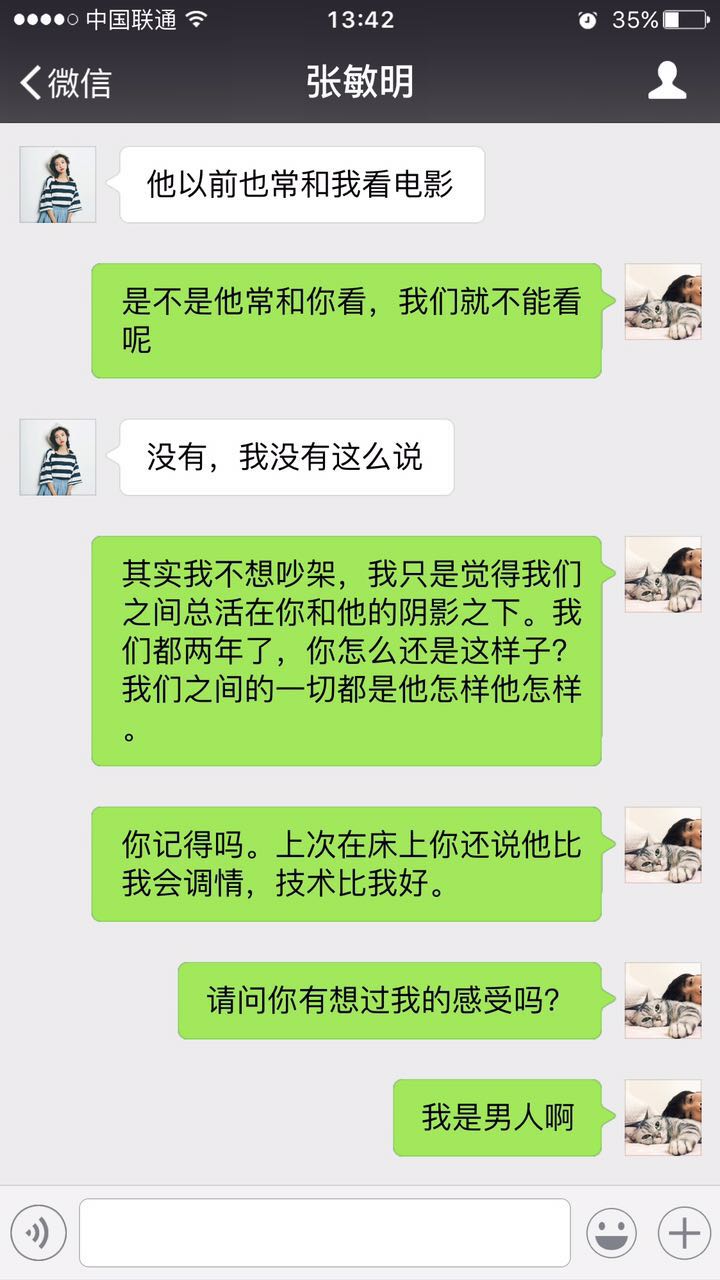 女友老是拿我和前男友比较,我该怎么办?附聊天记录