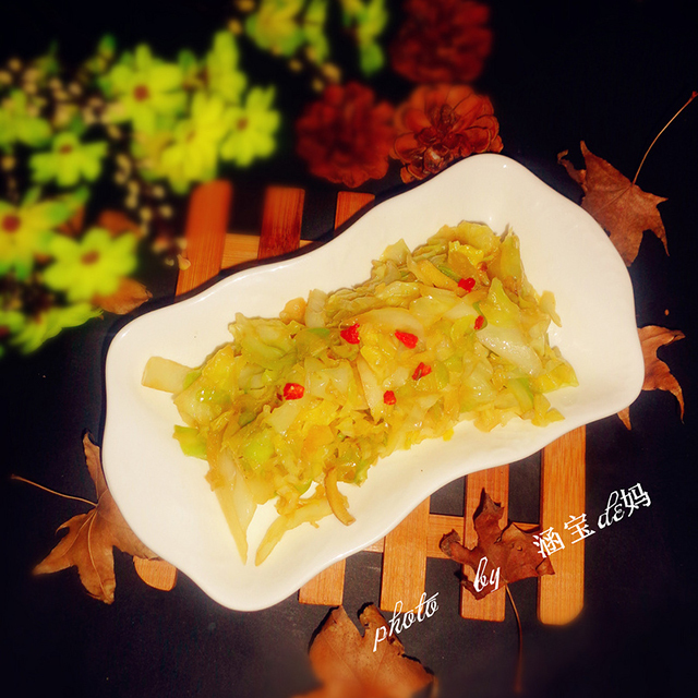 7. 炒至甘蓝变软即可