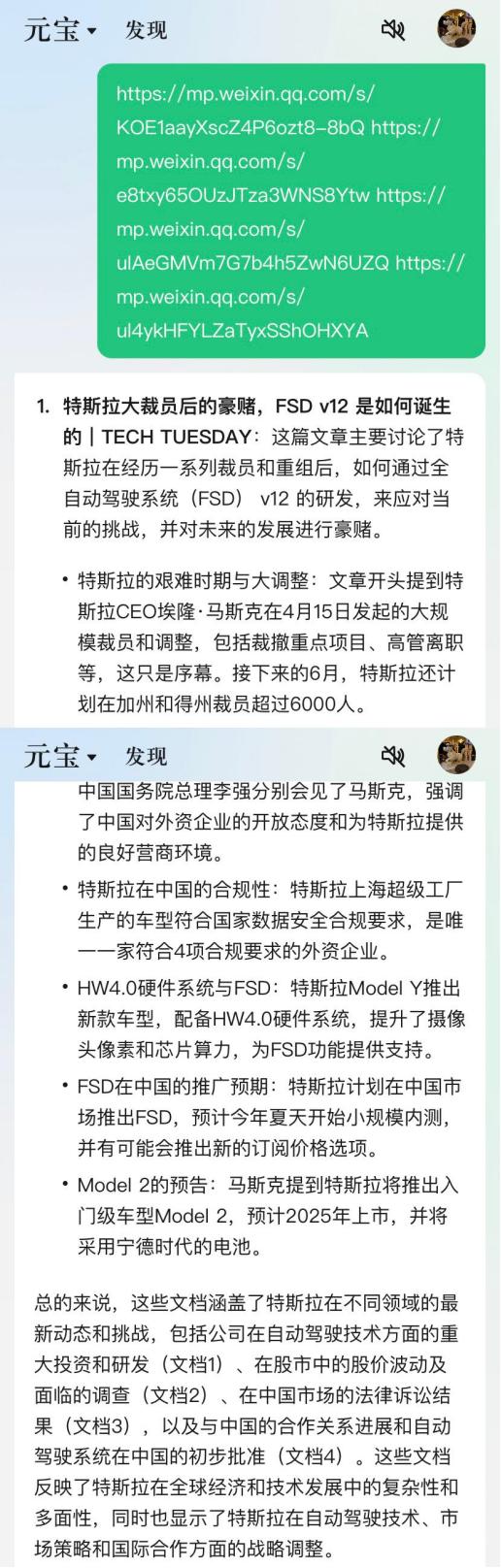 记者提交了四个微信公众号文章的链接,元宝对每篇文章内容进行了解析,不仅准确区分了各文章的主题要点,还细致地揭示了文章之间的逻辑联系,展现出对复杂信息的整合能力。