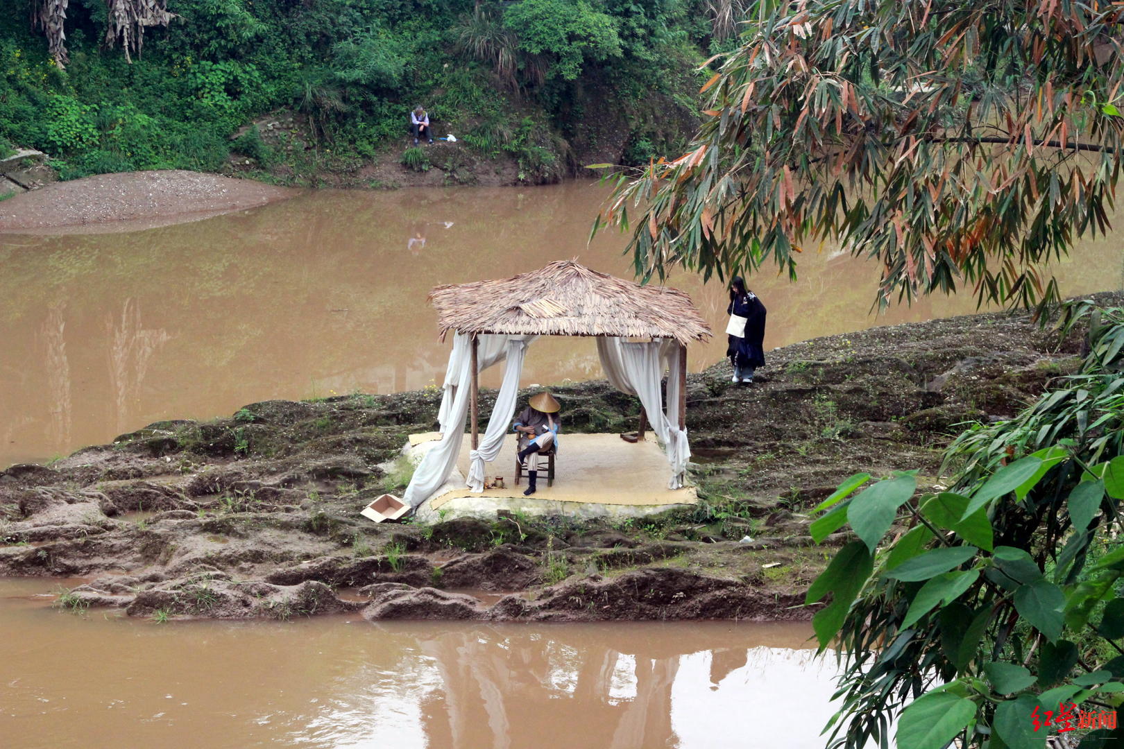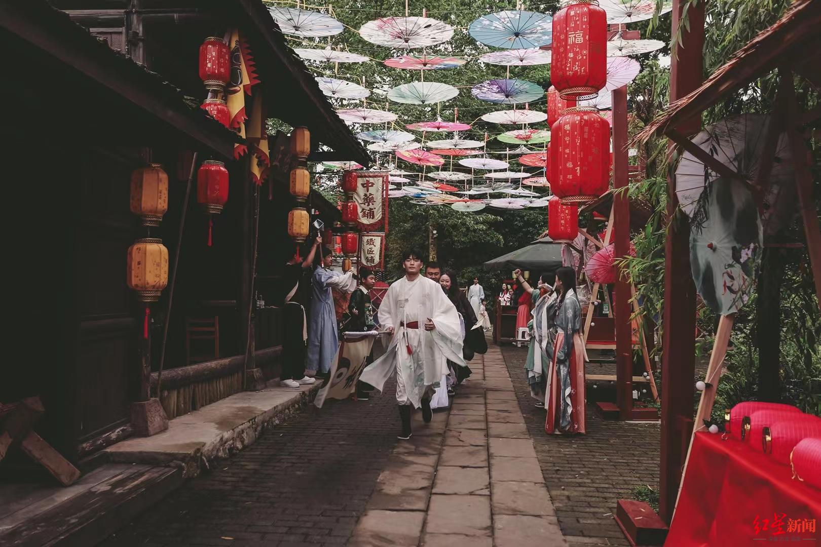 这不是影视剧的拍摄现场,而是崇州街子古镇味江景区武侠小镇上,玩家们正在进行的剧本杀游戏。
