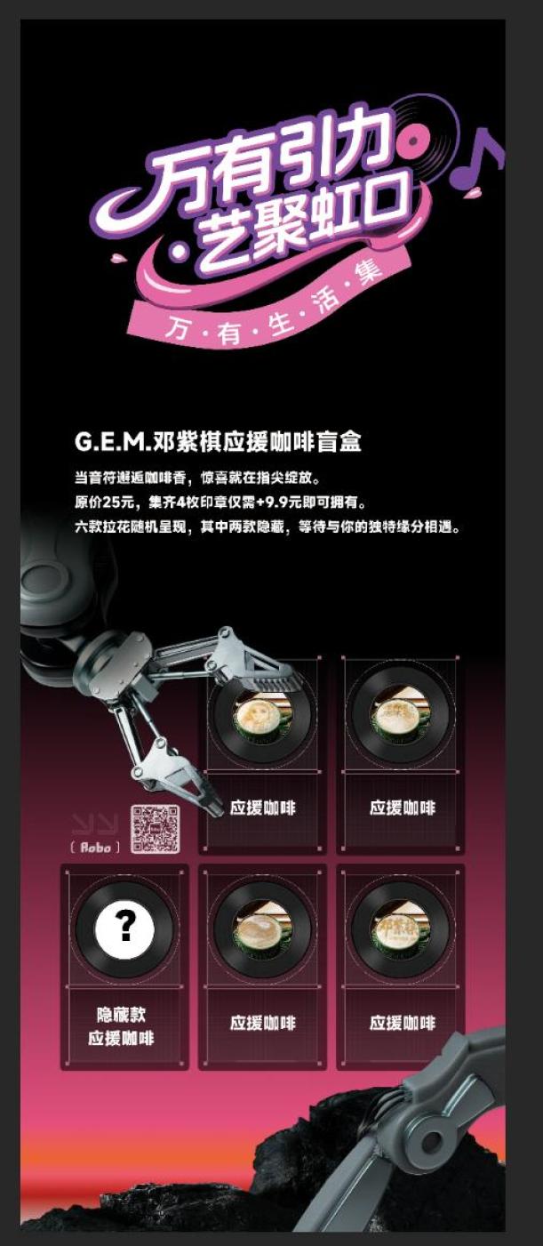 Tips:活动期间,应援咖啡原价25元,于任一打卡点领取万有生活集打卡地图后集齐四个章可+9.9元换购一杯~