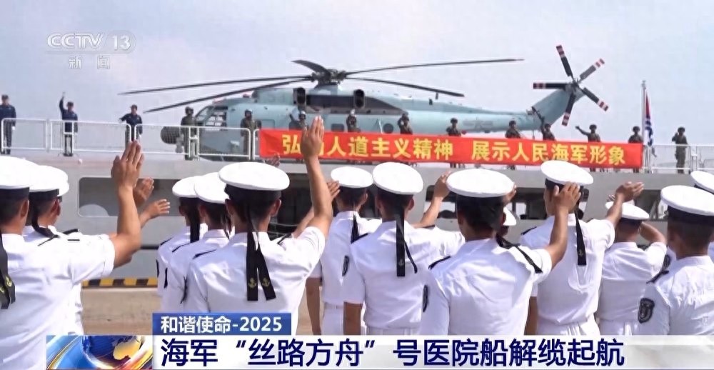 今天(5日)上午,海军“丝路方舟”号医院船在福建泉州解缆起航,执行“和谐使命-2025”任务。