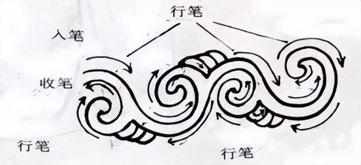 波纹与螺旋结合的勾线练习,从入到收一气呵成,要掌握线描的节奏与运笔的变化及指运、腕运、肘运的结合。