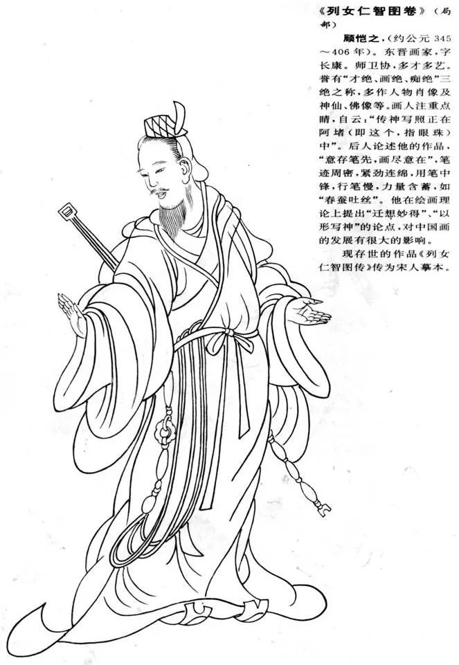 铁线类:此类线条匀细,行笔慢。勾线时中锋用笔,用力平稳均匀,笔在运行中没有上下提按的动作,如书法中的篆书,线条柔中见刚,圆润、挺拨、流畅,有种含蓄内在的力量。画家顾恺之、张萱、李公麟的作品多用此种线描。