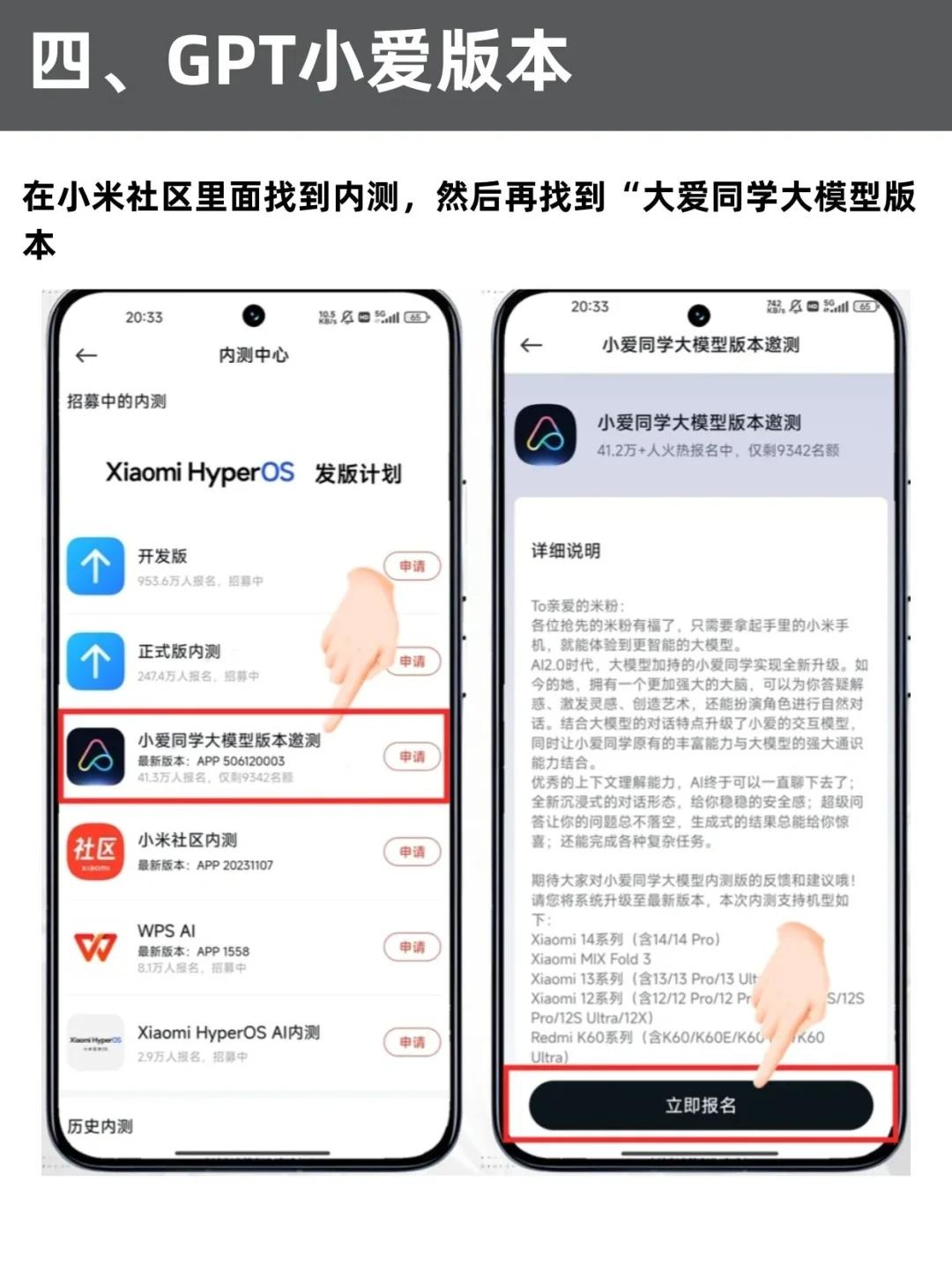 在小米社区里面找到内测,然后再找到“大爱同学大模型版