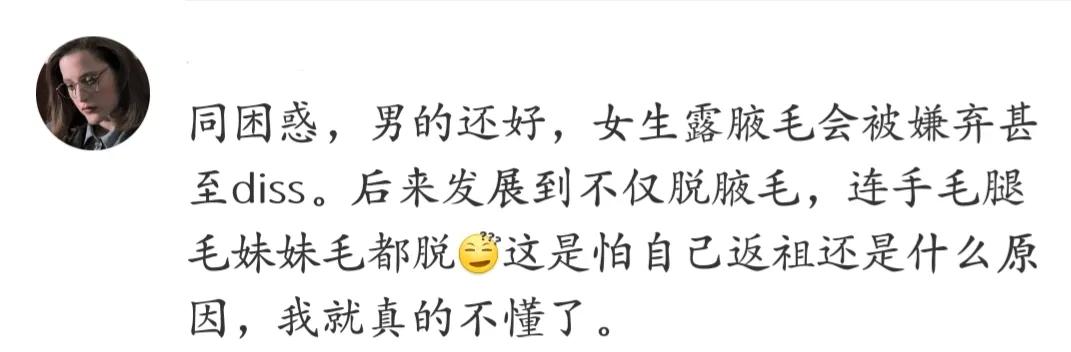 在特定场合,可以理解要打扮漂亮,温文尔雅美丽大方,但是在日常生活中我们并不需要别人提醒自己你该刮腋毛了。