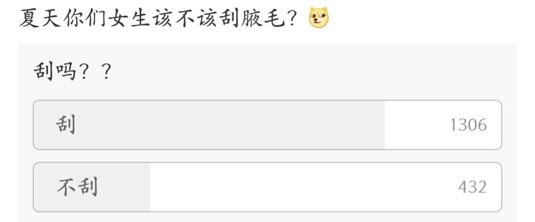 对于要不要刮腋毛,可见刮腋毛的投票量远远多于不刮腋毛的投票量。
