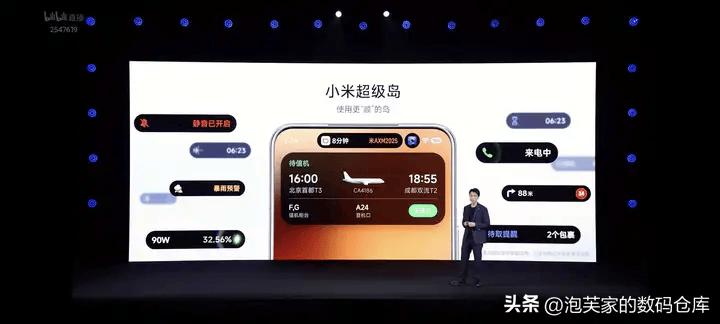小米之所以在国产手机大品牌中最后一个跟进苹果灵动岛类设计,核心原因在于其对同质化模仿的克制:不同于部分品牌简单复刻形态,小米选择等待自研芯片与系统架构的协同成熟,让超级岛不仅是交互窗口,更能依托澎湃OS3的算力实现信息处理+场景联动的双重价值,比如来电时自动关联手环震动提醒、外卖信息同步显示预计送达时间与路线,避免了早期灵动岛仅显通知的单一性。此外,离线语音转文字支持12种语言,识别准确率达92%;地铁跟拍模式下,画面晃动幅度较前代降低42%。这些看似分散的功能提升,背后是芯片算力、系统优化与场景需求的精准匹配。