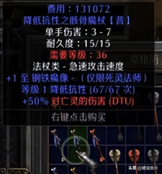 再说说怎么刷到类似武器,方法很简单。我们来到噩梦难度A2鲁高因,反复进出游戏,直到城市去野外的大门开在北面,附近有个药水武器npc--卓葛南。他的武器列表里就能刷到这个类似的武器,没有的话只要跑几步走出城市,再进来,武器列表就刷新了。反复半小时不到法杖就能到手。