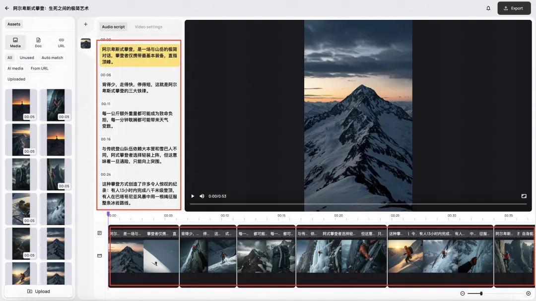 - 严谨党选「智能匹配」加「只用我的素材」——保证每帧画面都合你心意(省钱省力,资讯博主必备)
