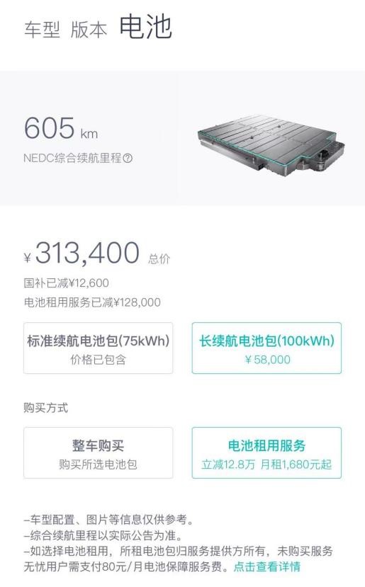 而选择电池租赁方案的话,不管在座的你是选择哪款电池,价格都是一样的,32w6。(不算补贴)