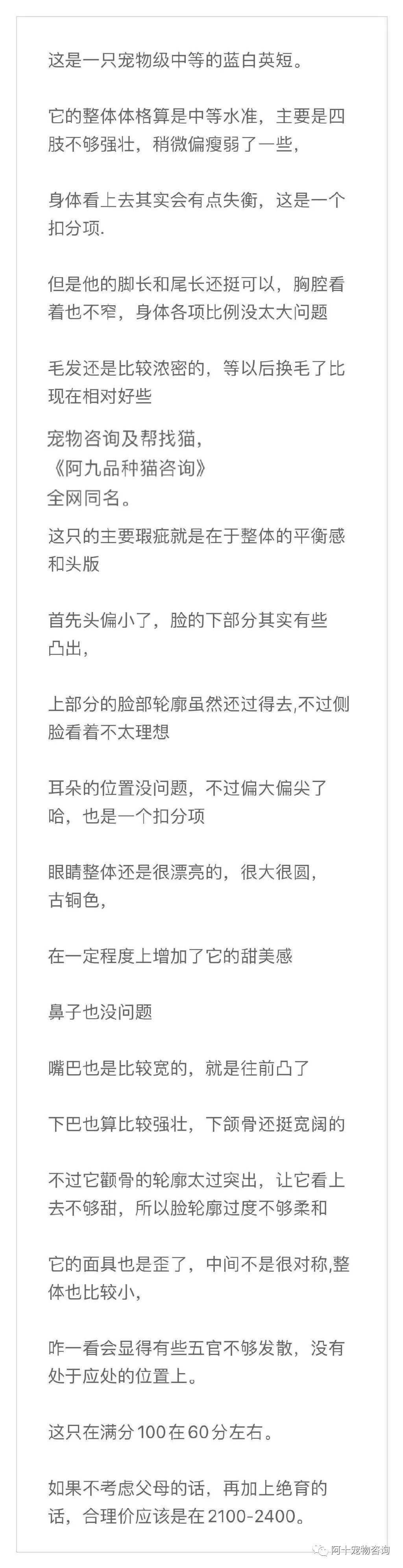 这个会在以后展开说说,如果你真有些拿不准自己现在看的猫价格是否合理或者品相如何,也可以请教阿九品种猫。