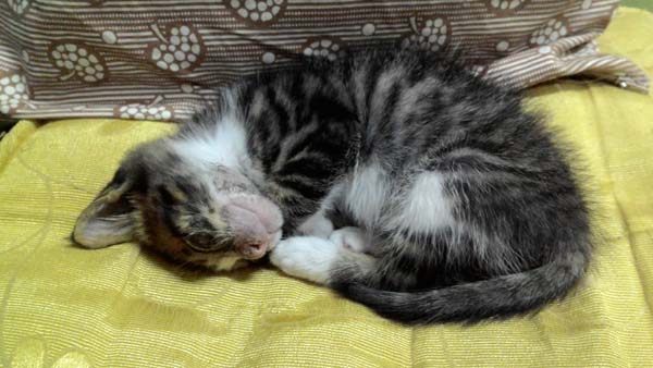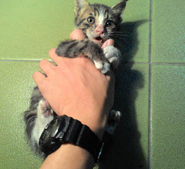 没想到第一眼看到便发现小喵呈垂死状态:无法站立、呼吸急促、叫声微弱、.....就算是没养过猫的人也知道小猫情况很危险,赶紧送往医院、每两个小时灌食、补充营养剂...情况才渐渐稳定下来。