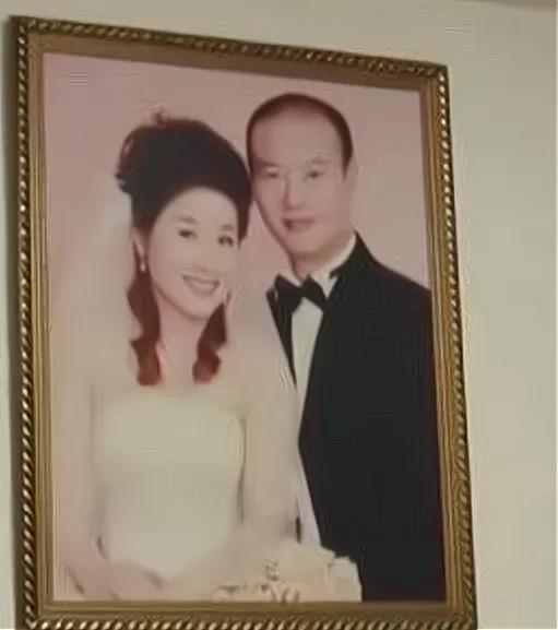 媒体到许国利家中采访,卧室床头墙壁上挂着他和来女士的结婚照。
