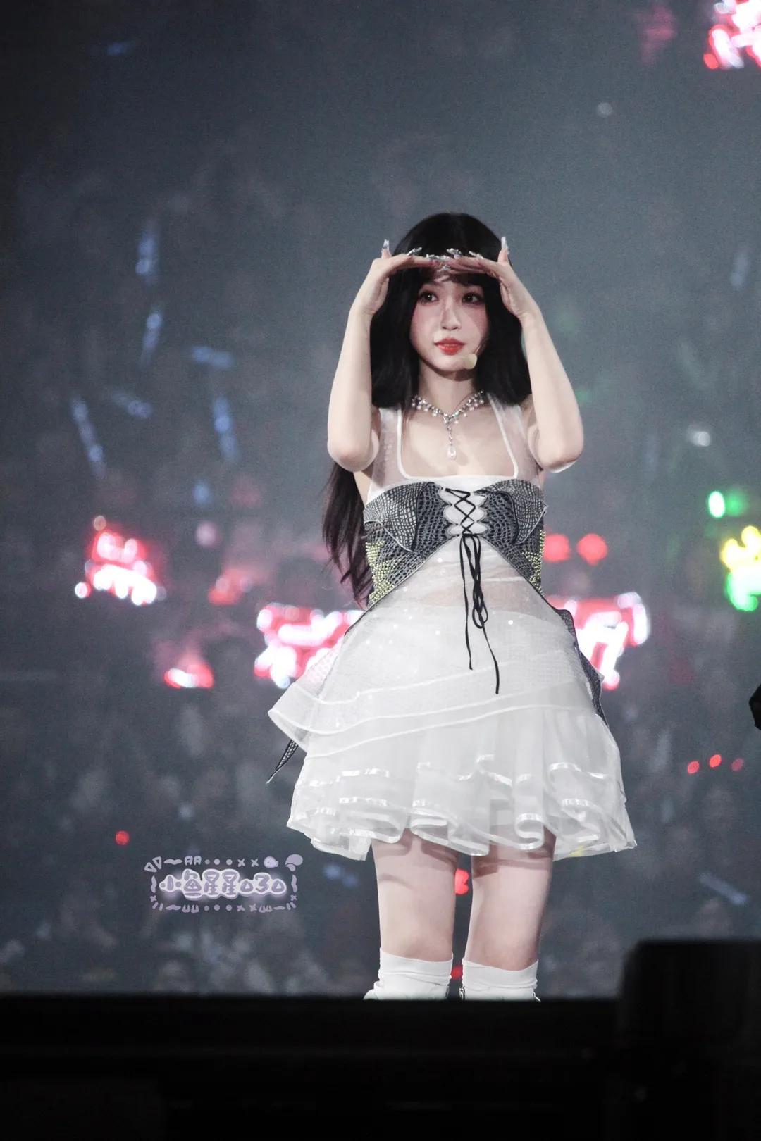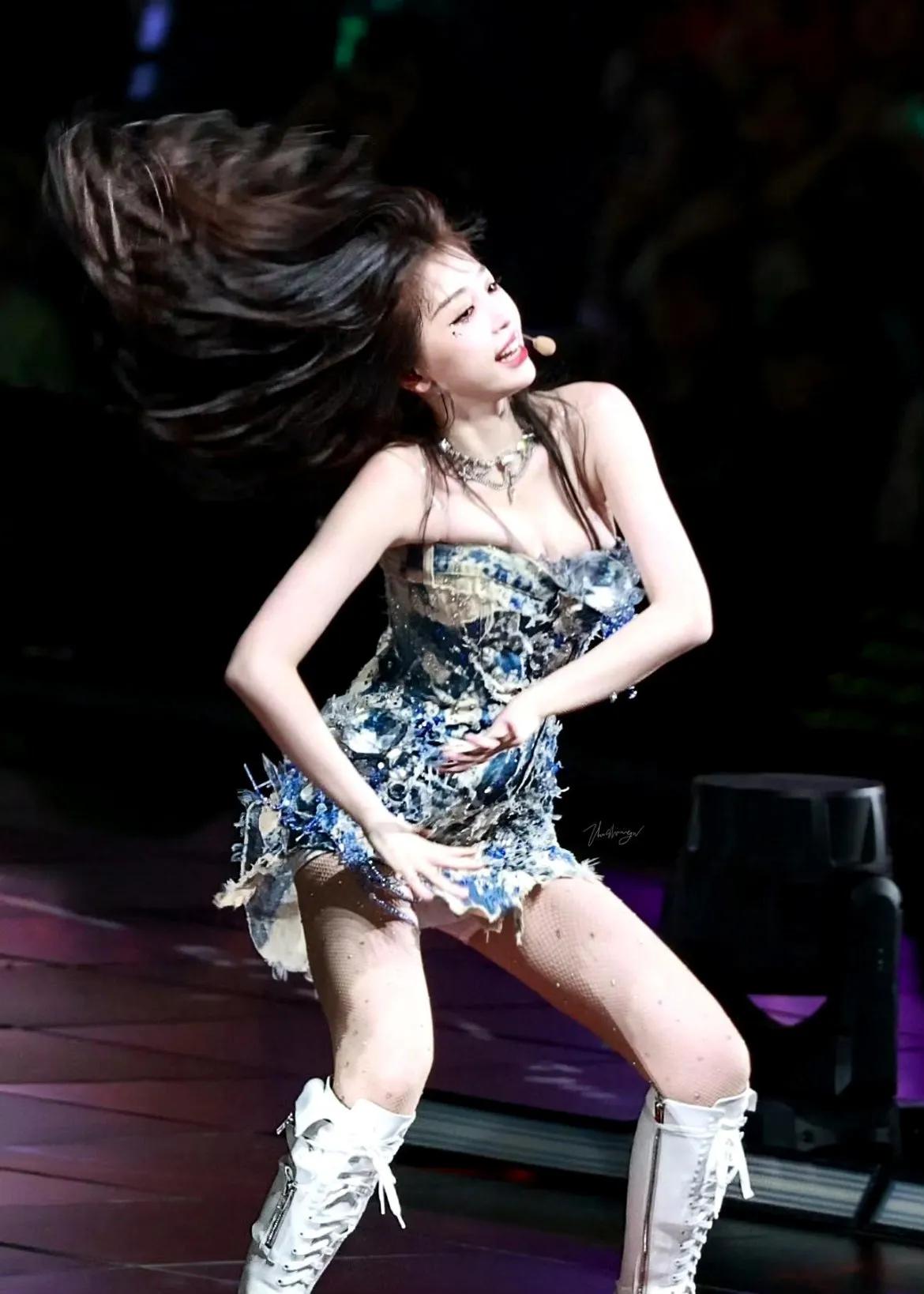 舞台上,虞书欣借灵动舞姿让服装与身材呼应,流苏随律动轻晃,纱裙伴步伐飘逸,将女团表演的甜辣张力与时尚设计完美交融,每一刻都在诠释“舞台精灵”的独特魅力 。