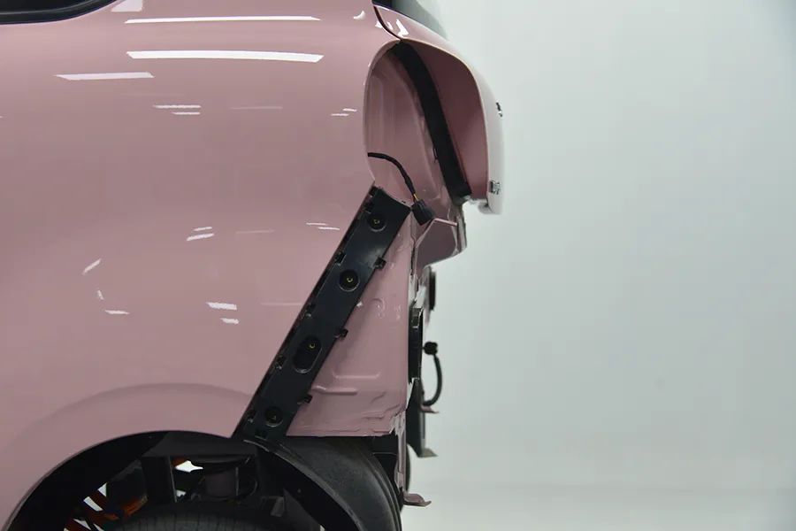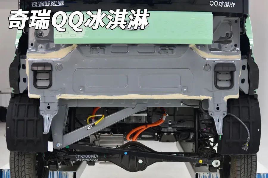 拆掉后保险杠,并没有看到后防撞梁,也没有任何缓冲装置,直接用车身来面对。和其他微型小电车差不多,都没有后防撞梁。