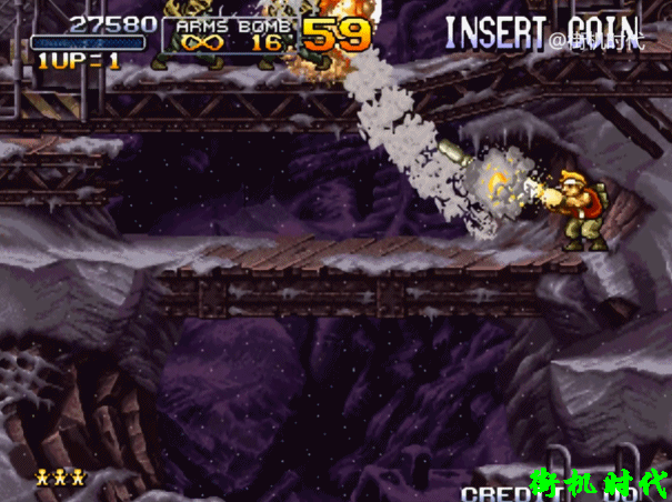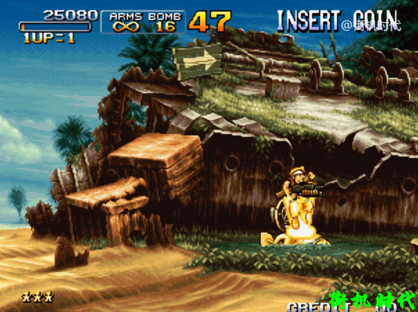 《合金弹头3》在游戏厅也曾经出现过一段时间,但时间相对比较靠后,当年没有见人一币通关过。不过经常都有年龄比较大的土豪玩家,一直买一堆币强行打通关了,让我们这些围观群众大饱眼福。